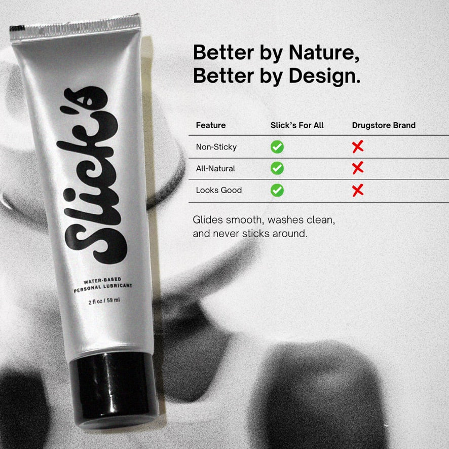 When things heat up, you need something that keeps it easy and smooth. Slick’s Organic, Water-Based Lube has your back. It’s light, natural, and won’t leave a mess, giving you all the slick without the stick. Whether you’re out under the stars or kicking back at home, it’s ready for the ride. No hassle, just a smooth glide. Saddle up and enjoy the flow.