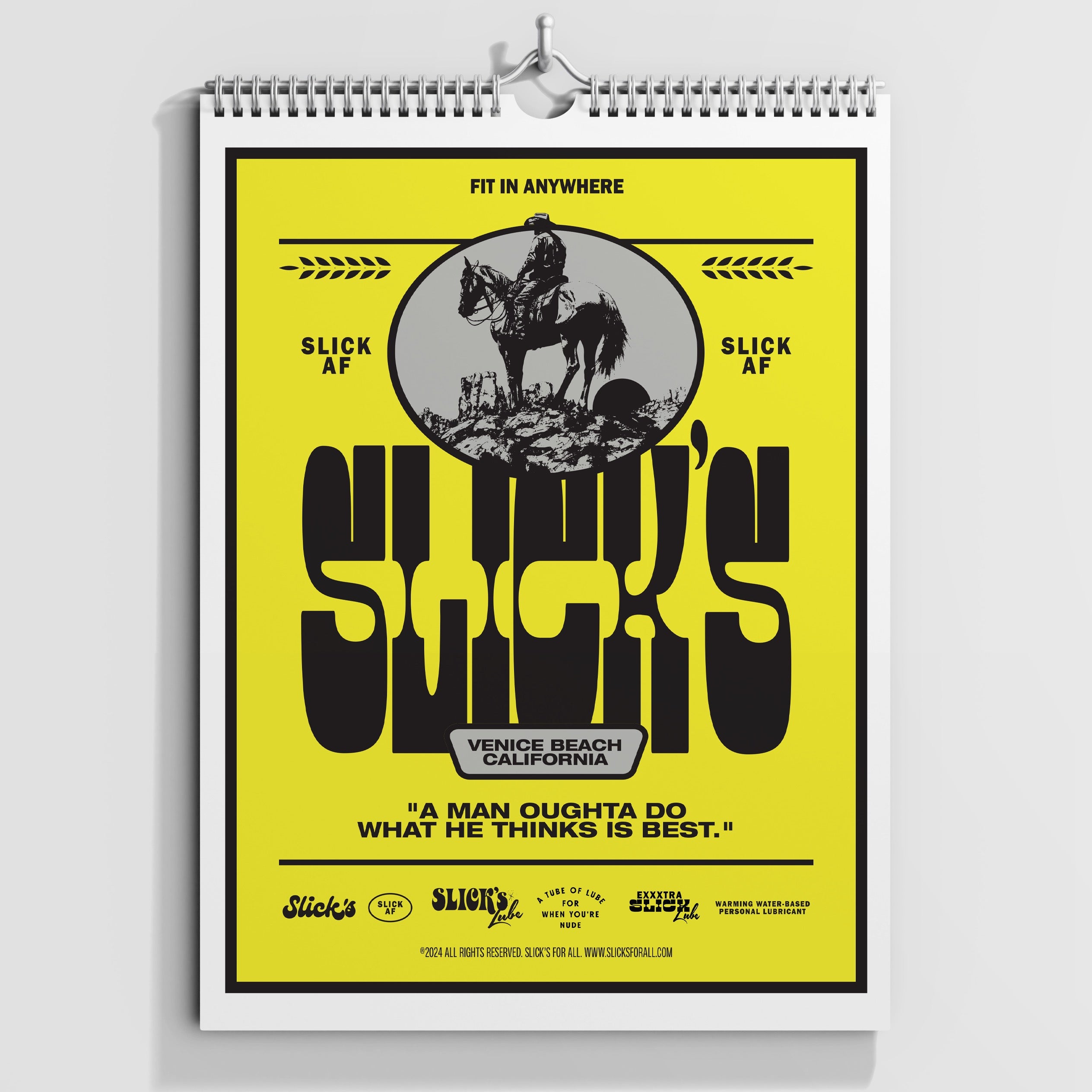 Unleash your inner adventurer with Slick's Perpetual Calendar! Stay on track with a cool perpetual calendar that keeps you current while also featuring epic photos of daring surfers, cattle wranglers, and hot, hot racers. Dare to live life to the fullest and embrace the freedom that awaits! Order your Slick's Perpetual Calendar today!